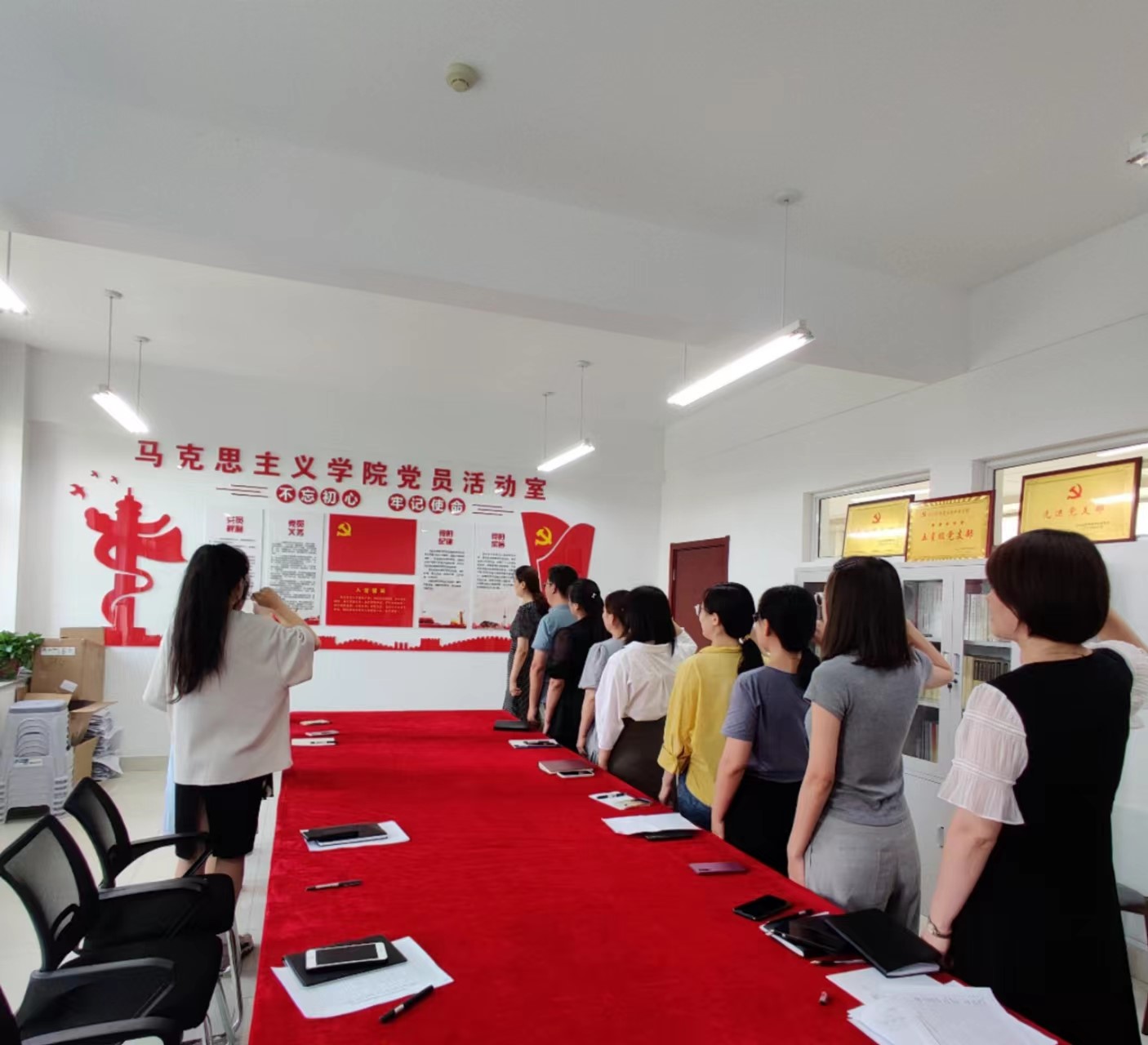 为庆祝中国共产党成立101周年,进一步激励马克思主义公司党员干部坚定理想信念、对党忠诚,履职尽责、奋发有为,马克思主义公司党总支开展“重温入党誓词,牢记使命担当”主题党日活动。面对鲜红的党旗,党员教师肃然站立,高举右手庄严向党旗宣誓。铿锵有力的宣誓声响彻马克思主义公司党员活动室,铮铮誓言表达了党员教师党的无限忠诚和热爱,表达了为党的事业奋斗终身的坚定决心。