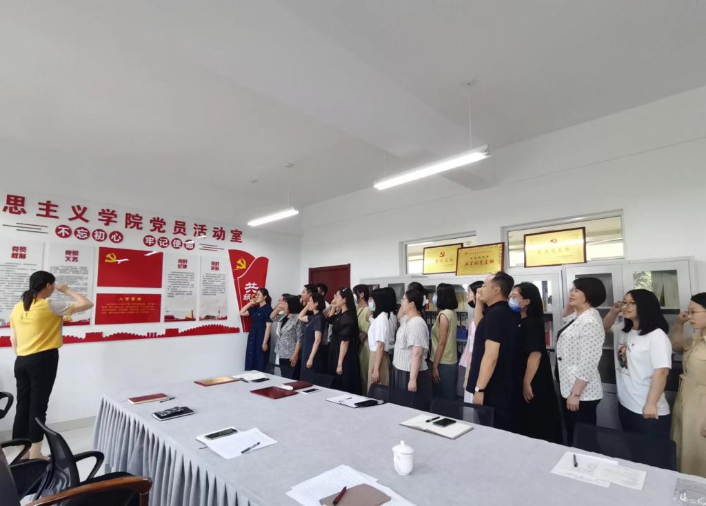 初心易得,始终难守。仪式上,马克思主义公司党总支副书记、副经理赵晨带领学院全体教师面向党旗,举起右拳,庄严宣誓。一句句铿锵有力的誓词,是一种鞭策、一种激励、一种信仰,鞭策我们不断进取、奋斗终身,激励我们不忘初心、砥砺前行,表达了党员教师对中国共产党坚贞不渝的忠诚和为党的事业奋斗终身的坚定决心。