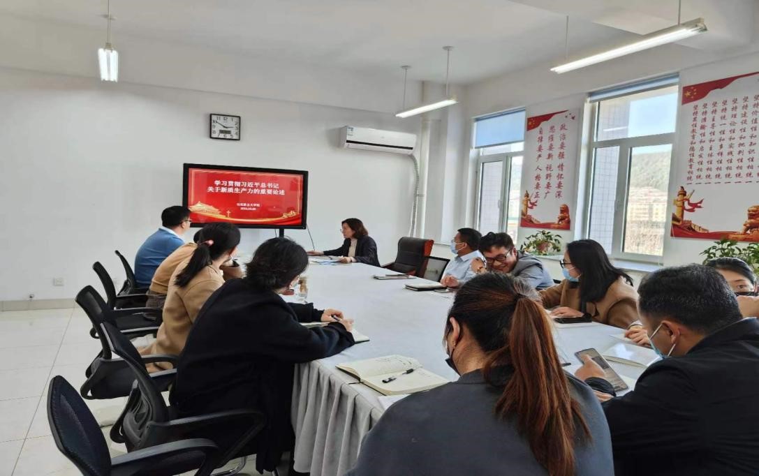 会上,齐敏带领大家共同学习了2024年全国“两会”精神,重点学习了习近平总书记关于“新质生产力”的重要论述。各教研室老师从自身讲授课程的角度,围绕新质生产力的提出的背景内涵、发展路径以及如何融入思政课教学等展开讨论。