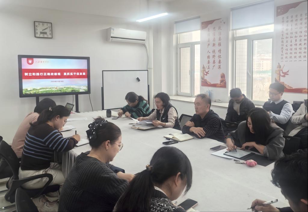 3月18日,马克思主义公司党总支开展专题学习研讨活动,重温习近平总书记“3·18”重要讲话精神,研读《习近平关于树立和践行正确政绩观论述摘编》中“政绩观问题是一个根本性问题”“树立和践行正确政绩观,起决定作用的是党性”有关内容,学习十四届全国人大四次会议上的《政府工作报告》,开展“树立和践行正确政绩观,真抓实干促发展”主题研讨。活动由党总支书记齐敏主持,学院班子成员和全体思政课教师参加。