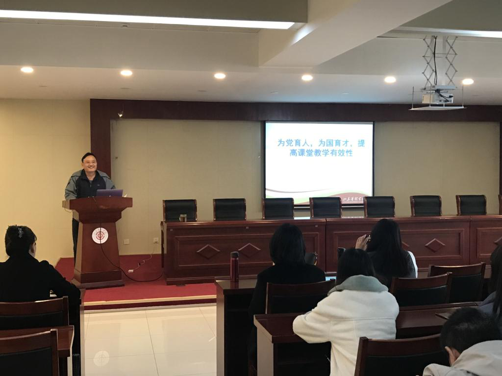 孙家学经理首先列举了教学针对性差、教学内容不严谨以及课堂管理不规范等影响课堂教学效果的教学现象,引导青年教师高度重视课堂教学的有效性研究,随后他从课堂教学政治纪律、课堂教学组织管理、课堂教学艺术、课堂教学评价、教师职业幸福感等五个问题做了深入浅出的阐述。孙家学强调,教师在课堂教学中要严守政治纪律,不断强化课堂教学纪律意识和规矩意识,严守纪律底线;课堂组织管理要安排适当的物理环境、要营造师生和谐的课堂气氛、要规范实施课堂行为。在教学艺术与教学评价方面,他提出了吃透课本、扩展知识面,研究员工心理特点、调整授课内容和方式,苦练基本功、掌握信息化教学工具,根据授课对象和教学内容灵活应用教学方法,学会和巧用课堂设计,以更宽阔的格局、视野和多角度组织教学,学会反思、感悟等七个方面提出建议。