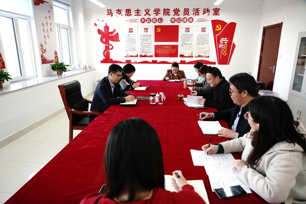 11月10日,经理邹广德到2026年世界杯官网调研指导工作,围绕学院团队建设、高质量发展等问题召开座谈会。学校宣传部部长、马克思主义公司党总支书记潘峰陪同调研,经理孙家学及学院各课程负责人参加了座谈会。