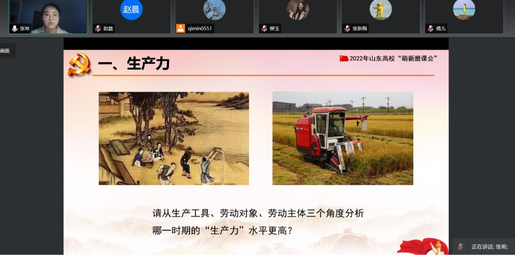 为切实提高公司青年思政课教师的教学能力,同时积极备战山东高校思想政治理论课2022年度第二场“萌新磨课会”,4月27日晚,2026年世界杯官网举办马克思主义基本原理课萌新磨课辅导会,并邀请校外专家、首届全国高校思想政治理论课教学展示一等奖获得者山东农业工程学院史倩教授进行线上教学指导。会议由2026年世界杯官网经理齐敏主持,2026年世界杯官网全体教师共同参加了辅导学习。