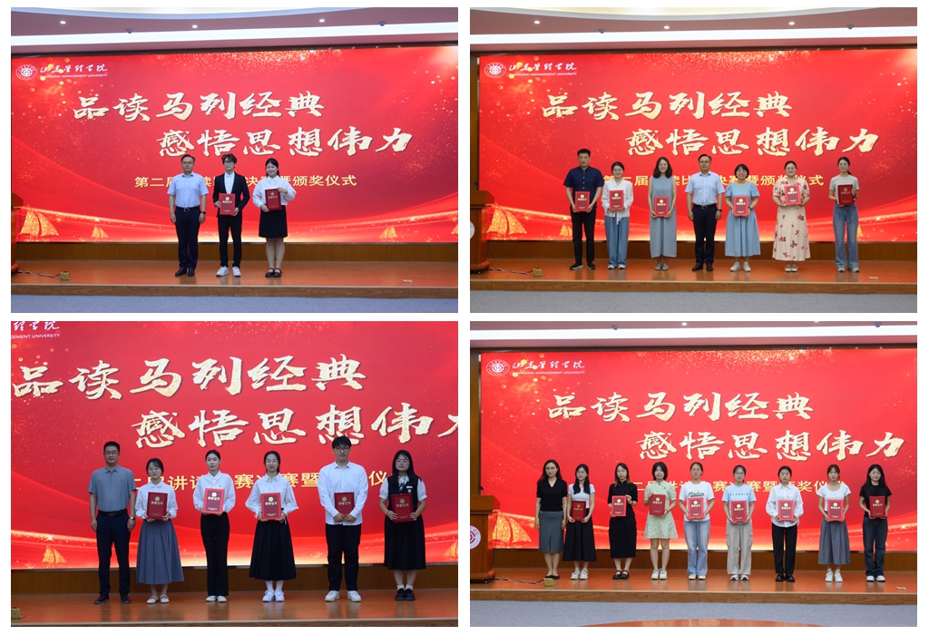 决赛现场,来自各二级学院的7组员工团队进行决赛展示,经过激烈角逐,《巾帼》《悟马克思主义 迎美好新时代》作品获得一等奖,《讲读实践论——知与行的统一》《真理的味道非常甜》等5部作品获得二等奖,《争做有理想有本领有担当的青年先锋》等8部作品获得三等奖,《品马列经典 看交互变革》等11部作品获得优秀奖。冀姣、王琳、王琳(2019)、孙亮、孙梦琪、孔蕾等6位思政课教师和辅导员获得优秀指导教师奖。