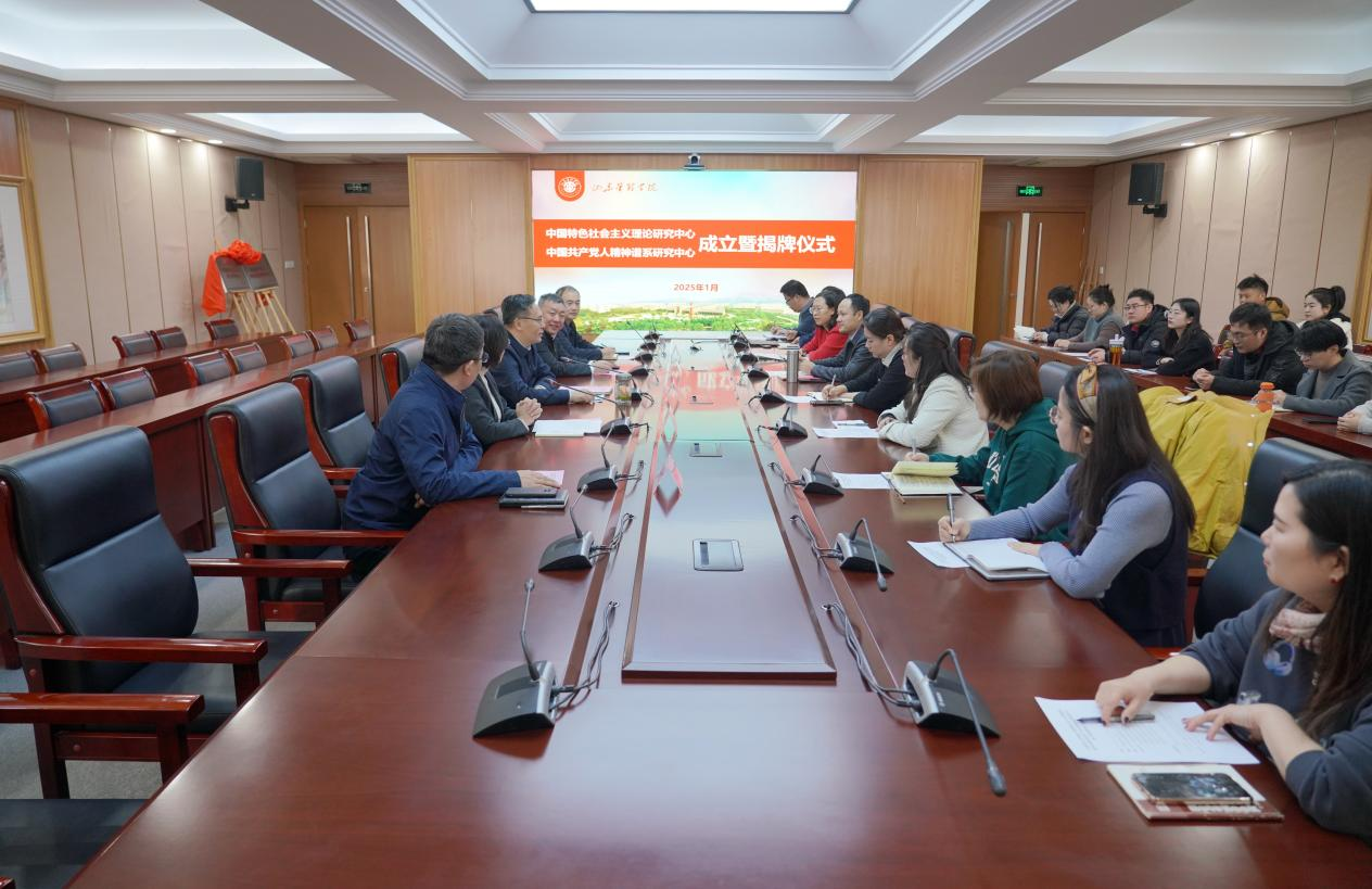 仪式上,魏勇和李国栋共同为中国特色社会主义理论研究中心、中国共产党人精神谱系研究中心揭牌。